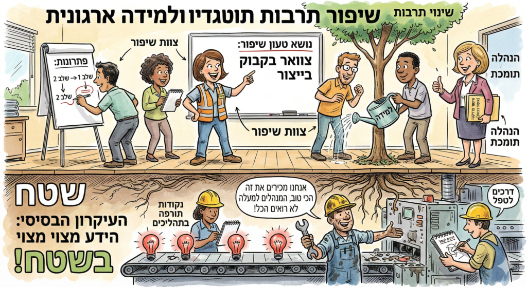 'צוות שיפור' (Quality Improvement Yeam) הוא כלי של למידה ארגונית; וכלי לשינוי תרבות ארגונית: קבוצת עובדים שמתארגנת לחקור נושא טעון שיפור, ליצור פתרונות, ליישמם ולהטמיעם, בתמיכת ההנהלה, כאשר הנושא יכול להיבחר ע"י הצוות באישור המנהלים; או מומלץ ע"י המנהלים... העיקרון הבסיסי שמאחורי צוותי השיפור הוא, שהידע מצוי בשטח: שהעובדים - ולא המנהלים - הם שמכירים היטב את נקודות התורפה של התהליכים, ואת הדרכים לטפל בהן.