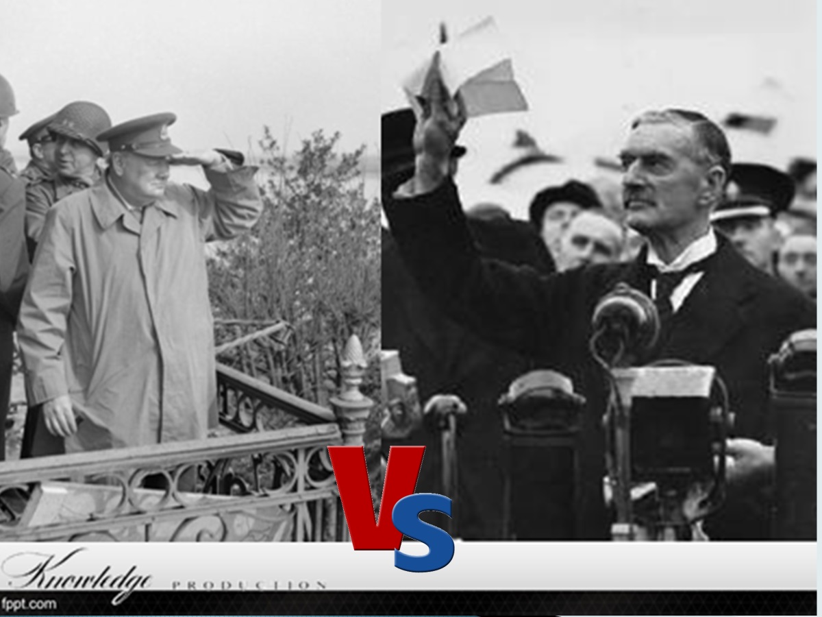 במשבר צ'כוסלובקיה בשנת 1938, כאשר גרמניה הנאצית תבעה לעצמה את חבל הסודאטים, סביב האירועים בצכ'יה, הבריטים הבינו שאת היטלר צריך לעצור. לא הצ'כוסלובקים עמדו בראש מעייניהם, אלא הרצון למנוע מהיטלר (או דומיו) מלפעול בצורה דומה במקומות אחרים.
