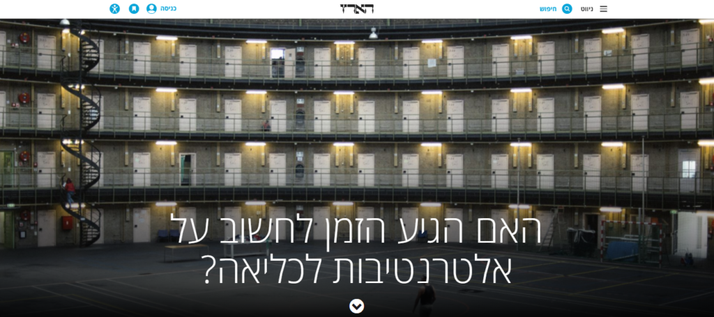 הכתבה "פורצים החוצה", הילו גלזר 10.11.2017 (ראה בהמשך למטה), סקרה את ה"מעבר ממדיניות של החמרה בענישה ועלייה מתמדת בשיעורי הכליאה למדיניות רציונלית יותר, פחות מבוססת גמול, שמבקשת לייצר חלופות לכליאה", ואת העובדה שלמרות זאת, "שיעורי הכליאה בישראל הם עדיין מהגבוהים בעולם המערבי", כפי שציין פרופ' אורן גזל־אייל, דיקן הפקולטה למשפטים וראש המרכז לחקר פשיעה, משפט וחברה באוניברסיטת חיפה.