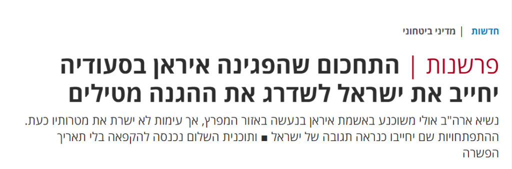 ב- 27 בספטמבר 2019 פרסם עמוס הראל הפרשן הצבאי של עיתון 'הארץ' כתבה תחת השם: "התחכום שהפגינה איראן בסעודיה יחייב את ישראל לשדרג את ההגנה מטילים"...