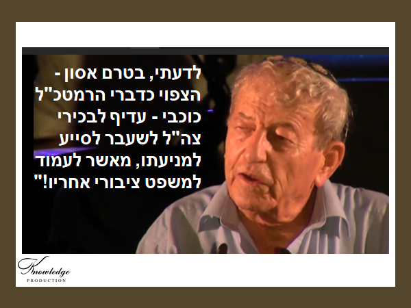 "לדעתי, בטרם אסון - הצפוי כדברי הרמטכ"ל כוכבי - עדיף לבכירי צה"ל לשעבר לסייע למניעתו, מאשר לעמוד למשפט ציבורי אחריו."