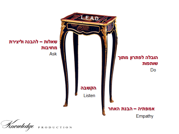 מודל L.E.A.D הנשען על 4 מיומנויות משלב את אבני היסוד האנושיים בכל תקשורת בינאישית, מסייע בחיזוק והטמעת התפיסה.