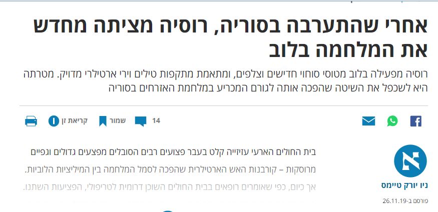 [בתמונה: כתבת הניו יורק טיימס ב'הארץ' מה- 26 בנובמבר 2019. לחצו כאן]