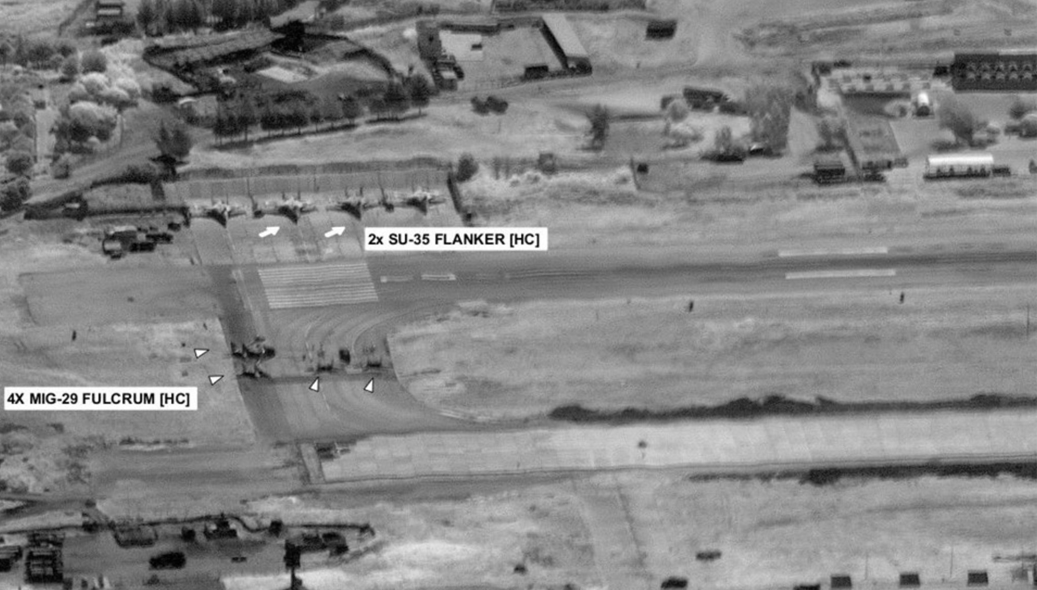 בתחילת מאי, המריאו מספר מטוסי מיג 29 וסוחוי 24 מרוסיה, בתהליך שחזר על עצמו במחזוריות של כמה ימים. בשעת ההמראה, כל המטוסים היו מסומנים בסימני חיל האוויר הרוסי. המטוסים נחתו בחמימים שבסוריה, שם מטוסי המיג 29 נצבעו מחדש; והורדו מהם סימני השייכות לחיל האוויר הרוסי.