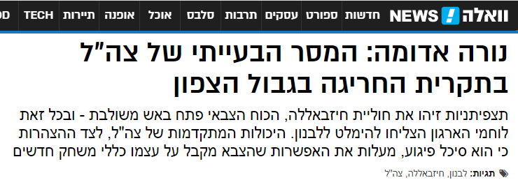 אינני מבין את ההצלחה הגדולה בתקרית האש היום בצפון... החיזבאללה מטרטר את המערכת שלנו כבר שבוע, כי שלא במתכוון, נהרג פעיל שלהם בסוריה כתוצאה של פגיעה בנכסים איראניים. פעיל שפעל נגד מדינת ישראל באמצעות הברחת נשק מדויק וכיוצא בזה.