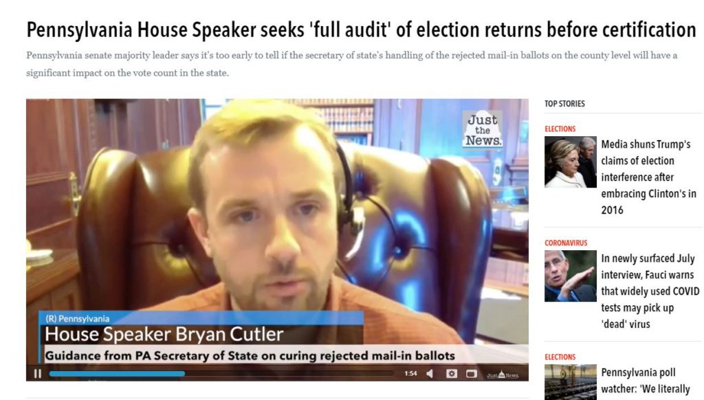הליך הבחירות בארה"ב מסתיים רק לאחר אישרור תוצאות הבחירות במדינות השונות על ידי מזכירי המדינות השונים. כרגע, כמו שהדברים עומדים, מתנהלים הליכים משפטיים במספר מדינות. עולות קריאות של חברי קונגרס מקומיים לערוך ביקורת להליכי הבחירות; ובדיקה מחודשת לתוצאות הבחירות שהתנהלו במדינות השונות. בין הדורשים לערוך ביקורת יו"ר הרוב בבית הנבחרים בפנסילבניה (ראו כתבה למטה). ארה"ב מדינה מסודרת ובבתי הנבחרים השונים הליכים עוברים בחקיקה. אם בפנסיבלניה ובמדינות האחרות יהיהו מספיק חברים קונגרס שיתמכו בדרישה לעריכת ביקורות, זה בדיוק מה שיהיה והבחירות לא יאושררו. ללא אישרור הבחירות לא ימונו אלקטורים (ההליך חייב להסתיים עד ה 12 לדצמבר מועד מינוי האלקטורים):