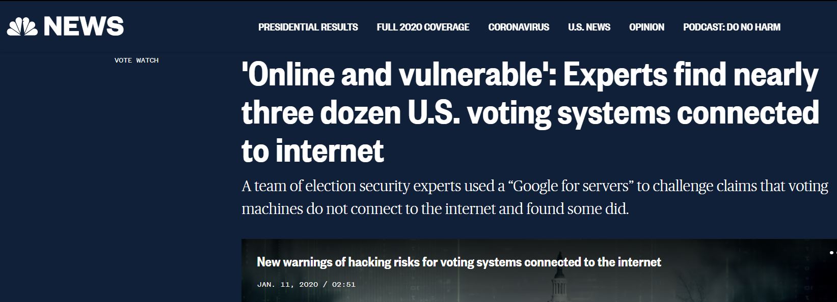 אחת הנקודות המענינות היא שאותן מכונות הצבעה ומכונות ספירת הקולות לא אמורות להיות מחוברות לרשת האינטרנט - זה כמו שדיווח רשת NBC? פשוט לא נכון ויש הצהרות חתומות של אנשים שהוצגו לפני שופט במישיגן ופנסיבלניה שגם הפעם מכונות היו מחוברות לרשת האינטרנט בניגוד לחוק המקומי.