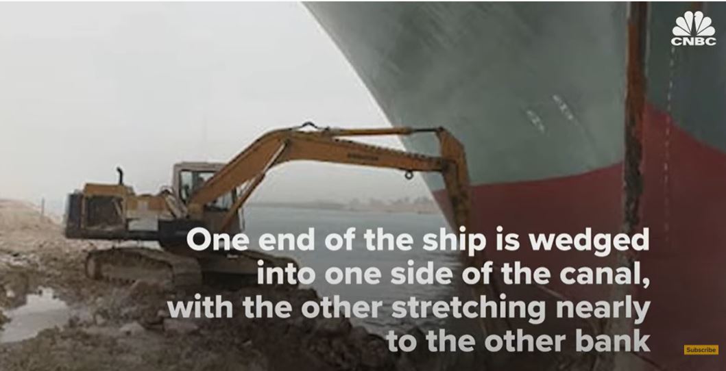 [בתמונה: הספינה התקועה בתעלה. התמונה היא צילום מסך]