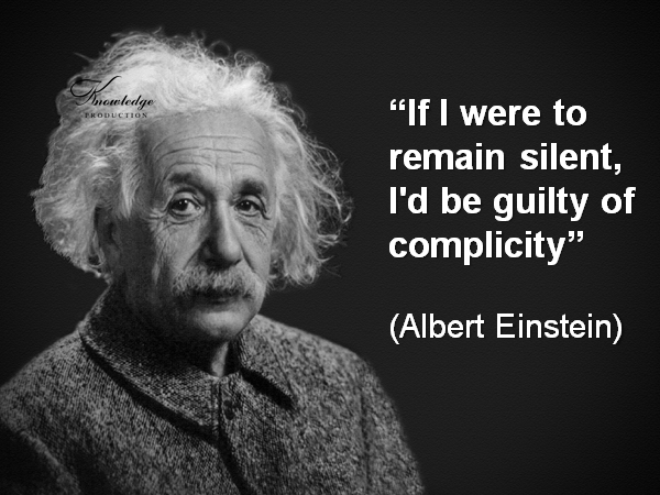 Or expressed even more succinctly: “If I were to remain silent, I'd be guilty of complicity” (Albert Einstein), or “Every word has consequences. Every silence, too” (Jean-Paul Sartre).