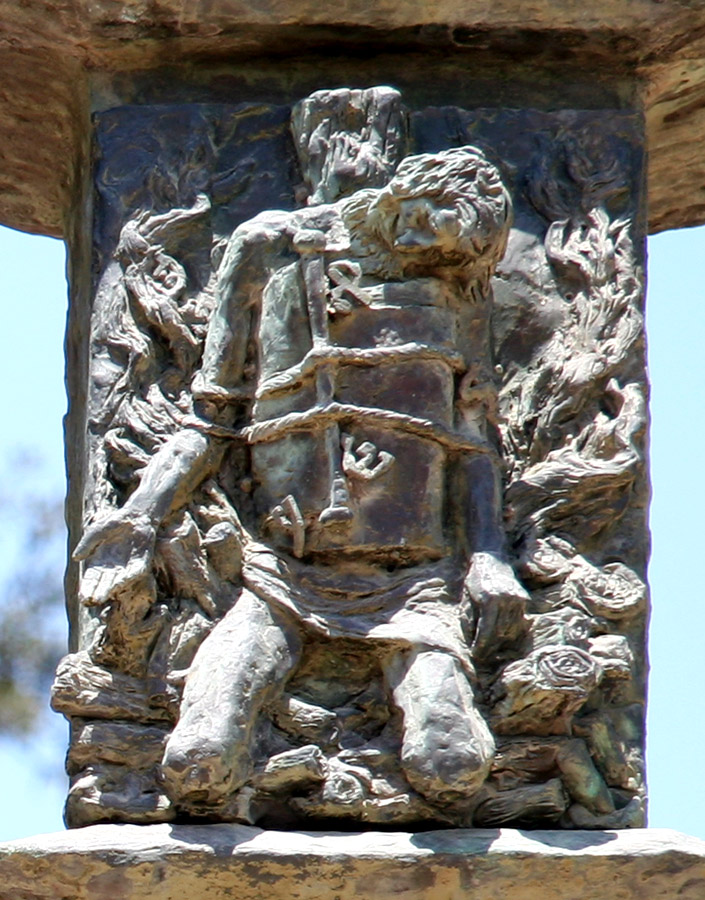 [בתמונה: דמותו של רבי חנינא בן תרדיון מוצא להורג ביצירתו של האמן בֶּנוֹ אֶלְקָן - מנורת הכנסת. הועלה לויקיפדיה ואושר לשימוש ע"י Tamar HaYardeni]