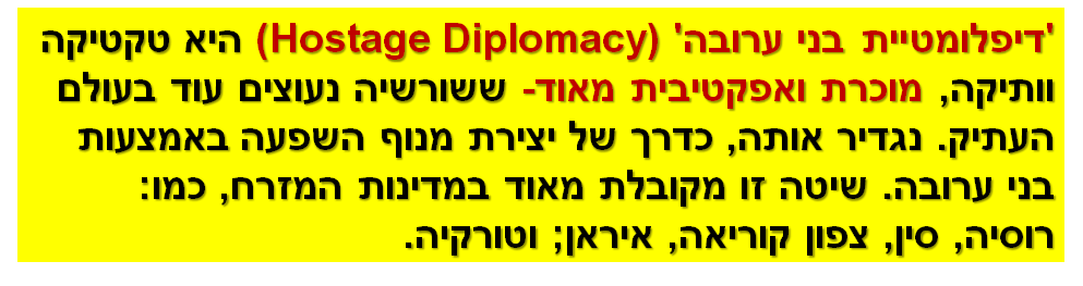 ארדואן נקט פה בטקטיקה וותיקה, מוכרת ואפקטיבית מאוד- ששורשיה נעוצים עוד בעולם העתיק. היא קרויה: 'דיפלומטיית בני ערובה' (Hostage Diplomacy). נגדיר אותה, כדרך של יצירת מנוף השפעה באמצעות בני ערובה.