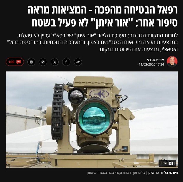 את התוהים על חוסר פעילותה של מערכת הלייזר: 'אור איתן', באירועים המתרחשים בימים אלה, אני מפנה למאמר שפרסמתי בספטמבר 2025 (ראו למטה).