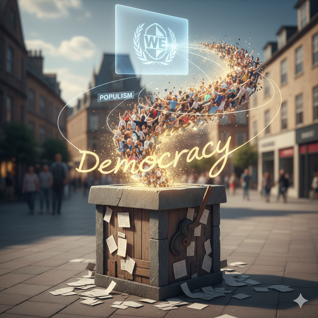 בימינו יש למושג זה קונטציה שלילית חריפה; והוא מהווה כלי ניגוח פוליטי, בדיוק כמו היפוכו של המושג: אליטיזם. בשפת ה- WOKE זוהי דמוקרטיה מהנוסח הישן, שיש צורך להפכה ל'דמוקרטיה מהותית' שנשלטת ע"י פקידים ושופטים...