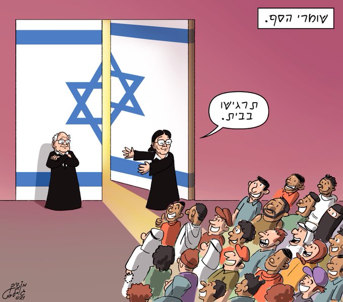 [בתמונה: שומרי הסף... הקריקטוריסט המוכשר: מושיק גולסט. התמונה מוצגת באישור היוצר]