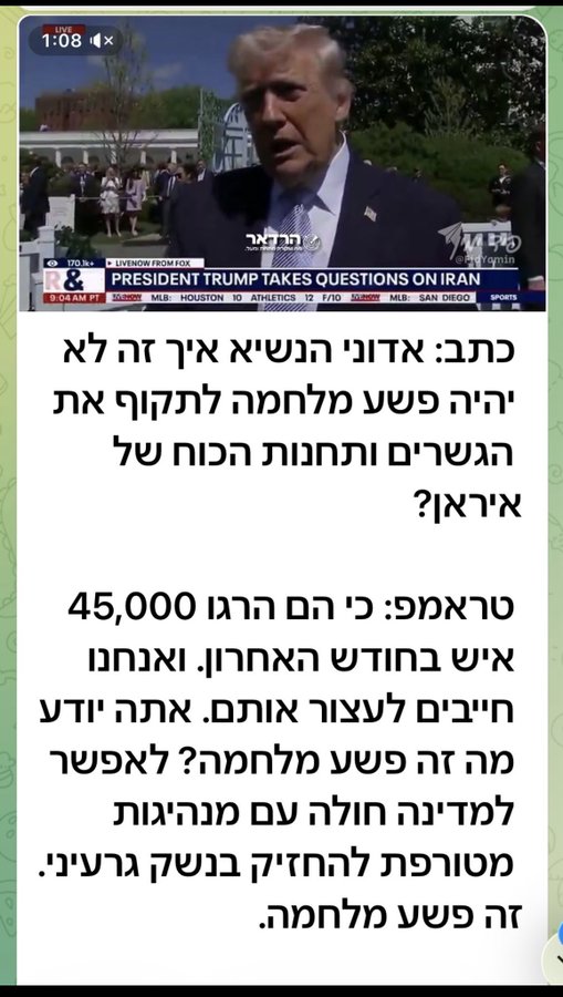 הטילים על לונדון הם כמובן "מדומיינים", וטראמפ "מתקפל" בגלל טילי כתף, ואירן קובעת את מהלכי המלחמה… זהו כלי קלאסי במלחמה פסיכולוגית ובתעמולה, שנועד לעצב את תפיסת המציאות של הצופה.