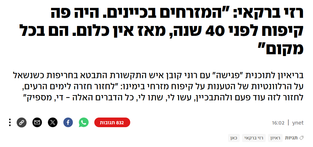 [בסרטון: רזי ברקאי בפודקאסט אצל משה רדמן: "גם לאחר שביבי ילך, נישאר עם הבעיה של הביביסטים…". המקור: דף הטוויטר של נתנאל גלסנר. אנו מאמינים כי אנו עושים בתמונה שימוש הוגן]