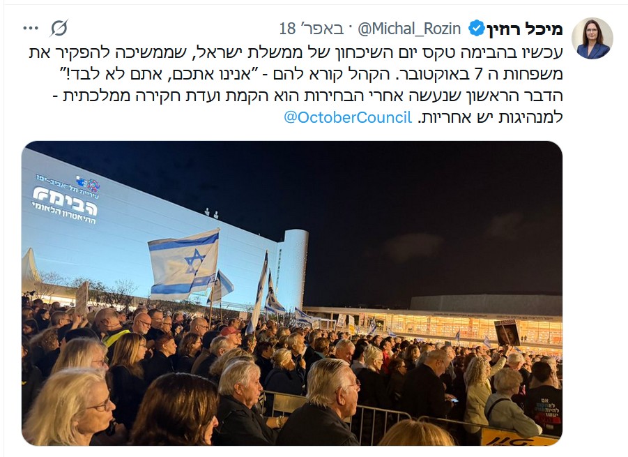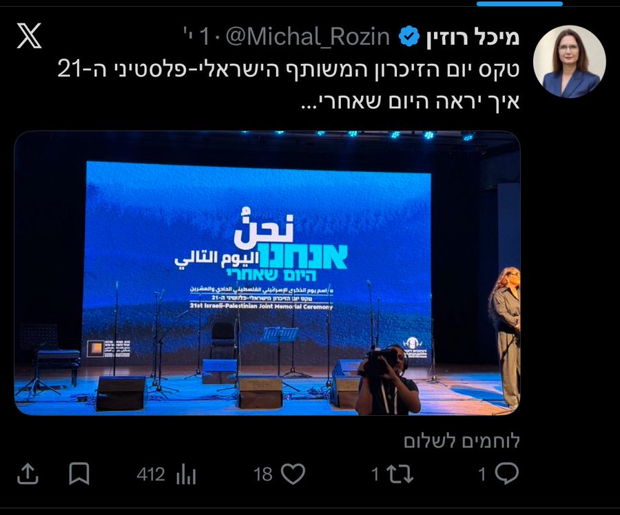 ![[בתמונה: "טקס יום השיכחון" של 2026:... המקור: דף הטוויטר של מיכל רוזין. אנו מאמינים כי אנו עושים בתמונה שימוש הוגן]](https://www.xn--7dbl2a.com/wp-content/uploads/2025/05/מיכל-רוזין.-יום-השיכחון.jpg)