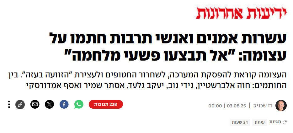 - אוסף המאמרים בנושא 'מלחמת חרבות ברזל'.