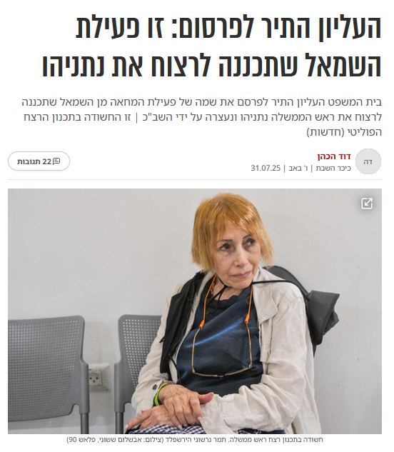 בית המשפט העליון התיר לפרסם את שמה של פעילת המחאה מן השמאל שתכננה לרצוח את ראש הממשלה נתניהו ונעצרה על ידי השב"כ | זו החשודה בתכנון הרצח הפוליטי (חדשות)