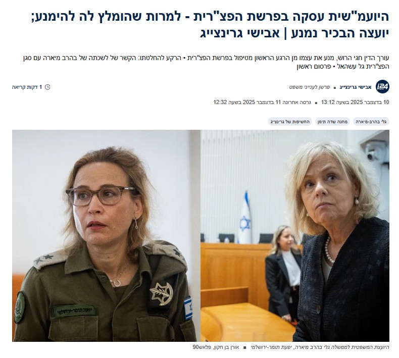 הודעת ראש אח"ק שהיועמ"שית לא על הכוונת, החרידה את הפרקליטות הצבאית, שמבינה שהרעיון הוא 'לזרוק אותם לכלבים'. זו הסיבה שסגן הפצ"ר, גל עשהאל, מיהר להדוף את האחריות בחזרה למעלה.