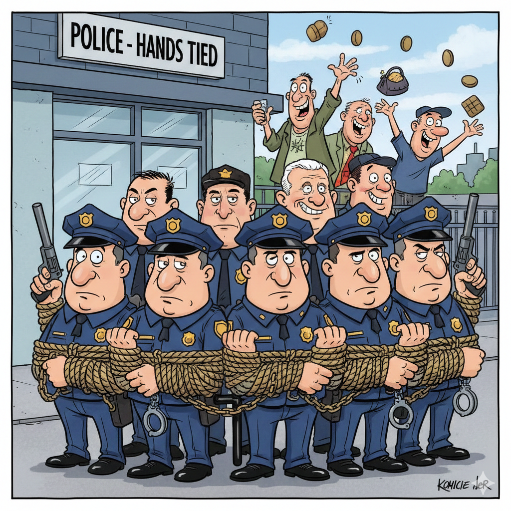 [בתמונה: במאבק הזה נגד ארגוני  הפשע, ידי המשטרה כבולות משפטית... התמונה עובדה במערכת הבינה המלאכותית Gemini' של גוגל]