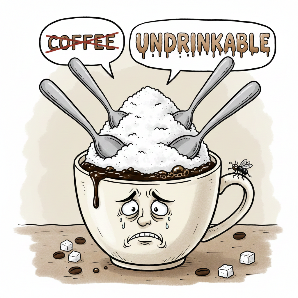![[בתמונה - עשיית יתר: כוס קפה עם כפית סוכר עשויה להמתיק את היום. אבל ארבע כפיות סוכר יהפכו את הקפה לבלתי ניתן לשתייה... התמונה עובדה במערכת הבינה המלאכותית Gemini' של גוגל]](https://www.xn--7dbl2a.com/wp-content/uploads/2026/01/ארבע-כפיות-סוכר.png)