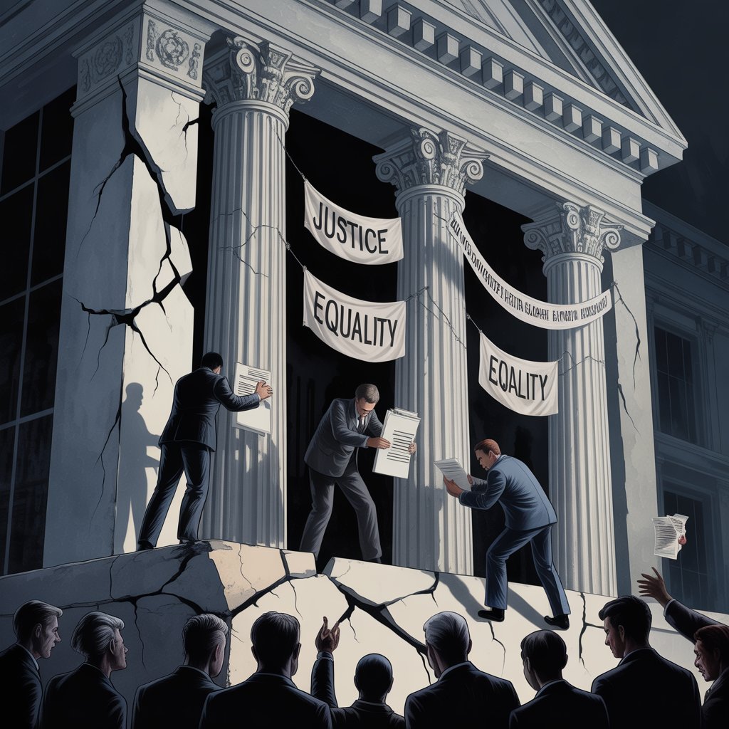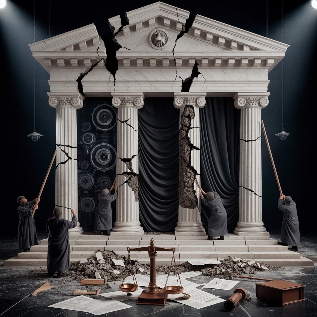 ![[בתמונה: חשיפה פומבית של ניצול לרעה של החוק עלולה למוטט את האשליה של ניטרליות מוסדית, אשליה שבלעדיה מאבד המוסד את מקור סמכותו... התמונה עובדה במערכת הבינה המלאכותית ideogram]](https://www.xn--7dbl2a.com/wp-content/uploads/2026/01/אי-צדק.jpeg)