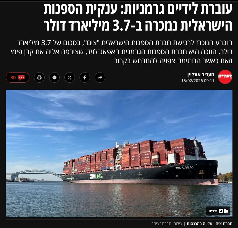 ![[בתמונה: מכירת צים מסכנת את עצמאות התובלה הימית לישראל... התמונה עובדה במערכת הבינה המלאכותית Gemini' של גוגל]](https://www.xn--7dbl2a.com/wp-content/uploads/2026/02/מכירת-צים.png)