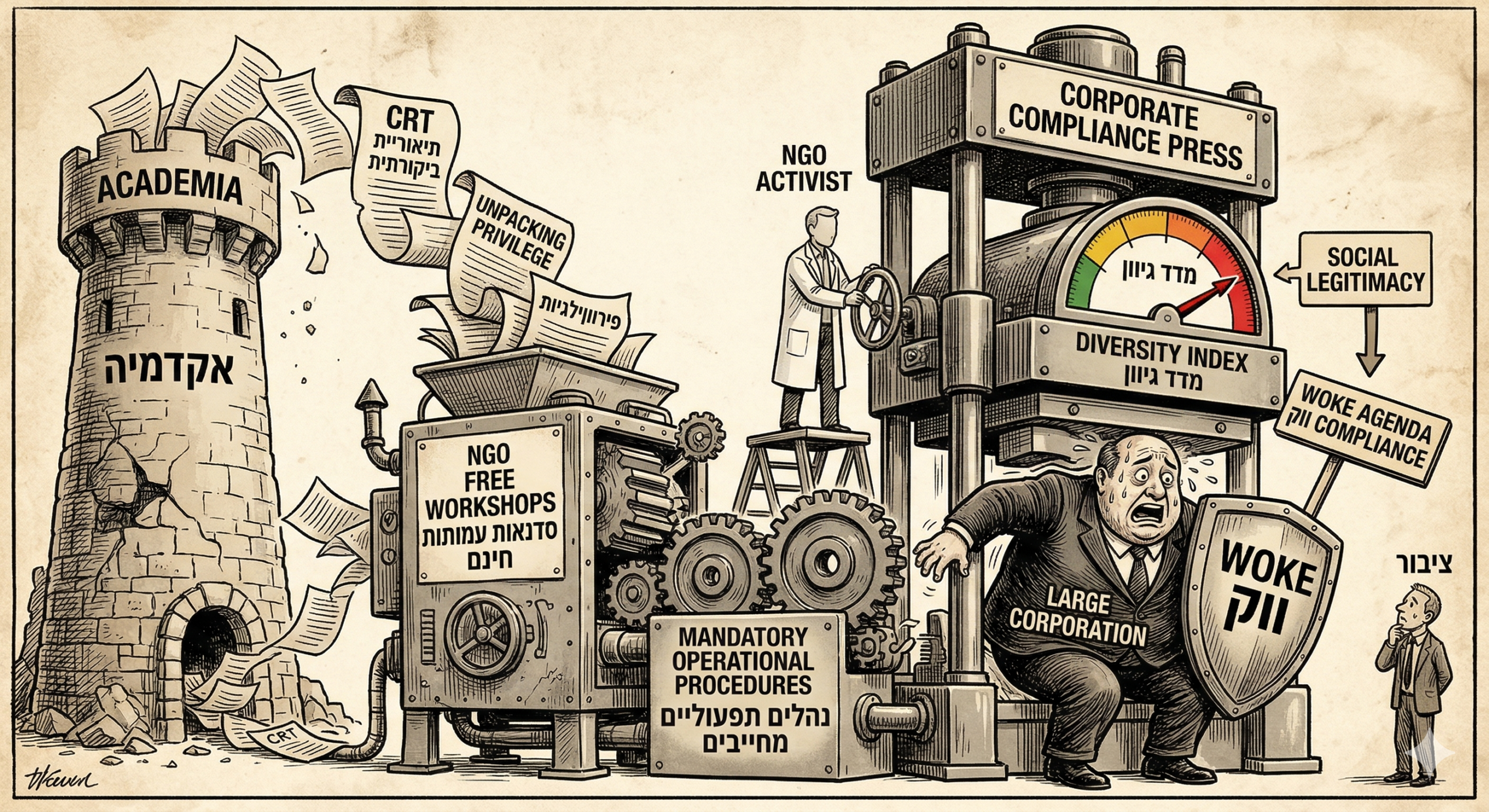 - יצירת "תעשיית ה-DEI": עמותות יצרו למעשה שוק עבודה חדש. הן מכשירות "מומחי גיוון" שמוצבים לאחר מכן בתוך מחלקות משאבי אנוש של ארגוני ענק. המומחים מצידם יוצרים מנגנון שכפול: ברגע שמומחה DEI מטעם עמותה נכנס לארגון, הוא פועל להבאת עמותות נוספות להדרכות, ובכך נוצר גלגל של תקציבים והשפעה שרק הולך וגדל.