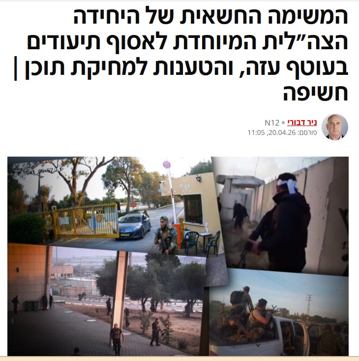 אגף המבצעים של צה"ל לא תפקד ב- 7/10, אבל יש תחום אחד שבו היה פעיל מאוד: לפי גילוייו של ניר דבורי ב- N12, יחידה חשאית בצה"ל של בוגרי יחידות מיוחדות בפיקוד סגן אלוף, אספה עשרות תיעודים מעוטף עזה, עוד בבוקר הטבח. למרות שהם היו חיילים שאינם בשירות קבע, לכולם ניתנו דרגות קצונה. זאת כדי שיוכלו להסתובב בשטח ללא הפרעה ולאסוף את כל התיעודים מבוקר ה- 7/10. לצורך ביצוע המשימה החיילים נאלצו לפרוץ למשרדים בקיבוצי העוטף.