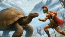 אכילס, הגיבור היווני הגדול הידוע במהירותו ובכוחו, מאותגר למרוץ על ידי צב, שהוא הרבה יותר איטי. כדי להפוך את המרוץ להוגן, אכילס מסכים לתת לצב יתרון של 100 מטרים בתחילת התחרות. ברור לנו לכאורה, שאכילס יעבור את הצב תוך זמן קצר, אך לטענתו של זנון – בתנאים אלה אכילס לעולם לא ישיג את הצב... זה מזכיר לכם משהו?