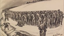עברנו כבר עשרים קילומטרים. לילה. אנחנו רק רוצים לנוח רגע. אך זה בלתי אפשרי. הולכים אחרינו גרמנים במקלות וכלבים נושכים ולא נותנים לנו לנוח. חלקנו נופלים, אך הגרמנים אינם מאפשרים לנו להרים אותם, הם דוחפים אותנו להמשיך ללכת אל תוך הלילה.