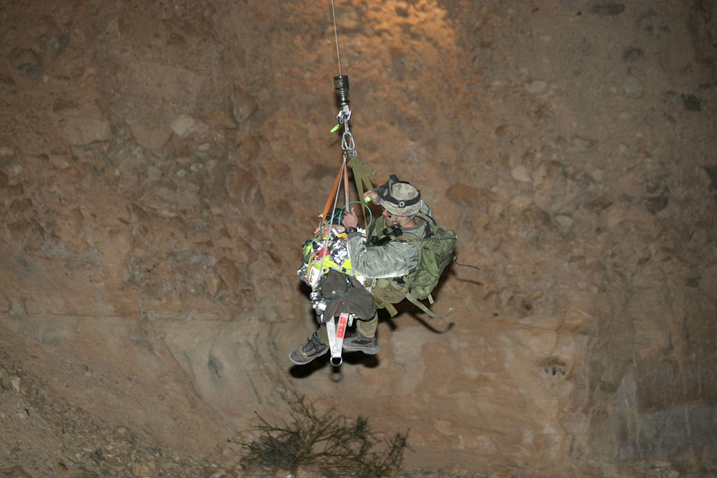 חילוץ של יחידת חילוץ מגילות בלב הקומראן. המחולץ נזקק למסוק, כי לא אפשרי להעביר אותו במכונית בצוקים הללו…
