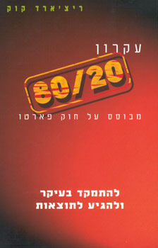 [בתמונה משמאל: כריכת ספרו של ריצ'רד קוק: "עקרון 80/20 למנהל - להתמקד בעיקר ולהגיע לתוצאות", שראה אור ב- 2004 בהוצאת אופוס. אנו מאמינים שאנו עושים בתמונה שימוש הוגן]