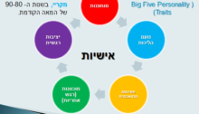 תקציר: מודל חמשת התכונות הגדולות (Big Five Personality Traits) פותח על ידי הפסיכולוגים, פול קוסטה ורוברט מקריי, בשנות ה- 90-80 של המאה הקודמת. השימוש העיקרי שנעשה במודל זה היה, בעיקר, במבחני אישיות של עובדים, לצורך מיון עובדים. לפי המודל, קיימות חמש תכונות בעלות השפעה ניכרת על אישיות האדם, ועל האופן שבו הוא מתנהג; וניתן לאפיין את האדם…